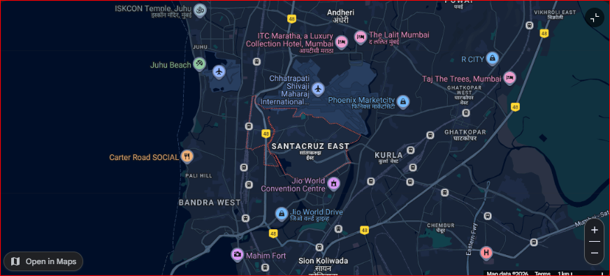Santacruz East is one of Mumbai’s most sought-after residential zones, known for its excellent infrastructure and seamless connectivity. Shapoorji 9 Arcs Santazcruz enjoys easy access to Bandra-Kurla Complex (BKC), Western Express Highway, Santacruz Railway Station, and Mumbai International Airport. This strategic location ensures reduced travel time to major business hubs, educational institutions, healthcare centers, and entertainment destinations.